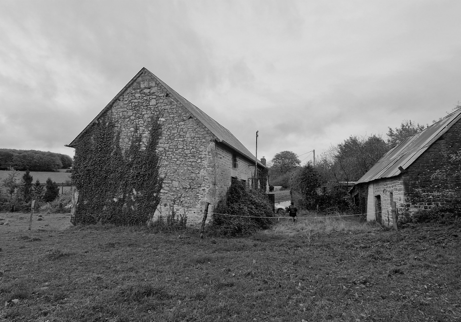 Le contexte : Cette ancienne ferme située en pleine campagne normande était abandonnée depuis 50 ans. Elle n’avait pas l’eau courante et n’était plus raccordée au réseau électrique. D’une surface d’environ 70m² au sol, la maison était composée d’une pièce de vie, d’étables et d’un grenier.